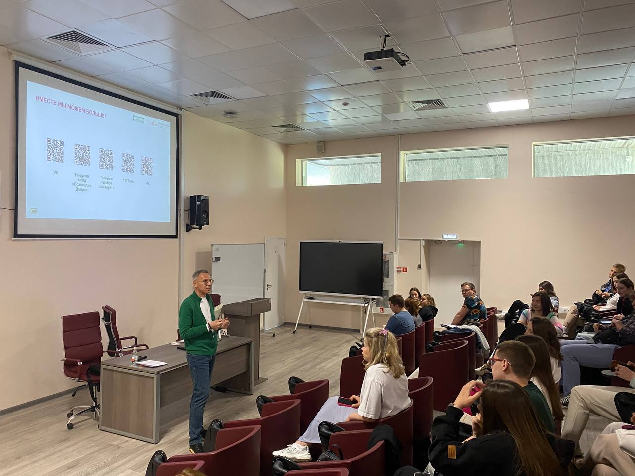 17 мая соучредитель Благотворительного фонда "Созвездие Добра", директор по корпоративной и социальной ответственности БК "Лига Ставок" Виталий Мнацаканов провел лекцию для студентов экономического факультета кафедры рекламы и бизнес-коммуникаций Российского университета дружбы народов (РУДН). Темой выступления стало развитие спортивной благотворительности и корпоративного волонтерства в рамках социальной ответственности бизнеса.