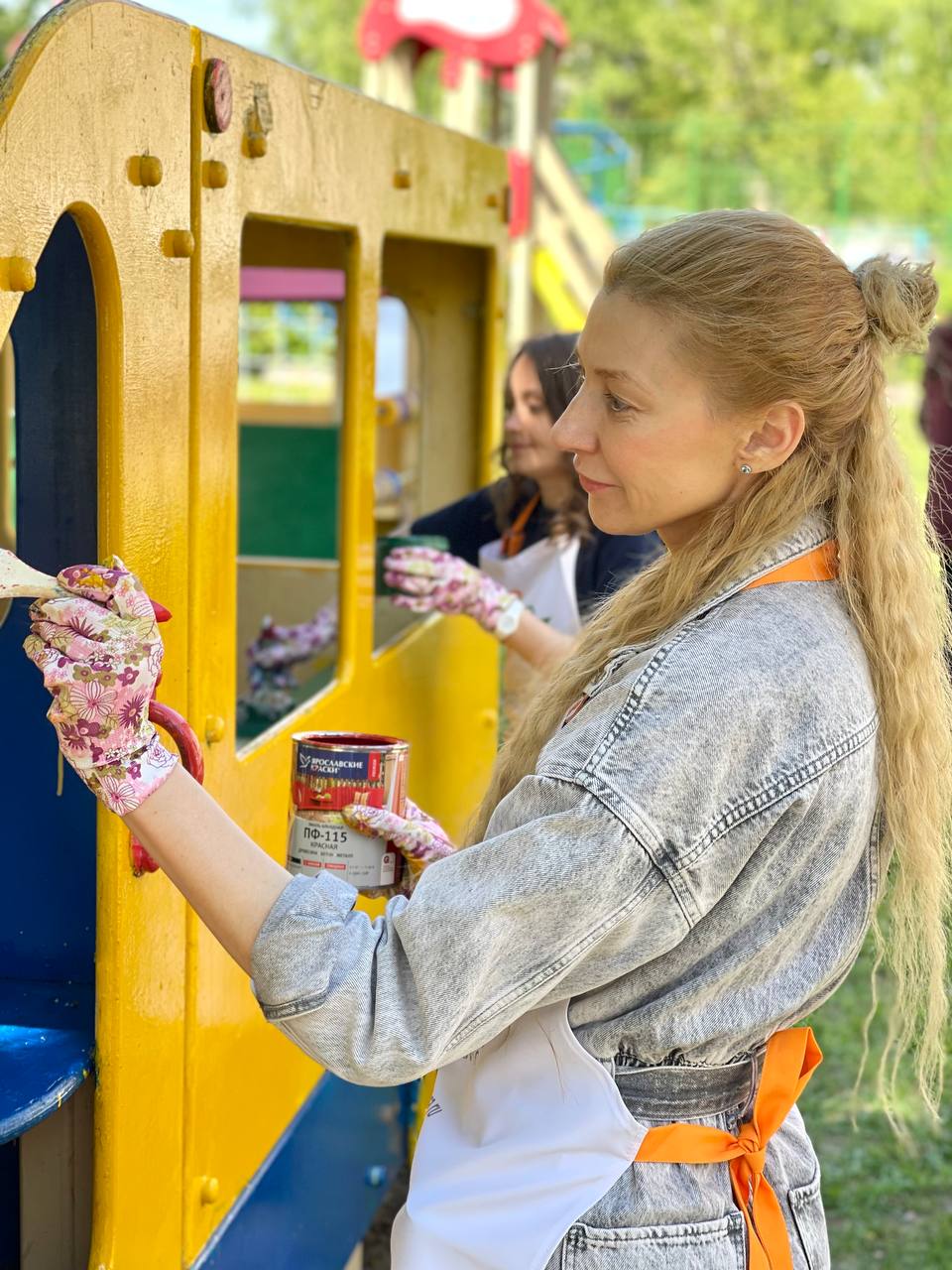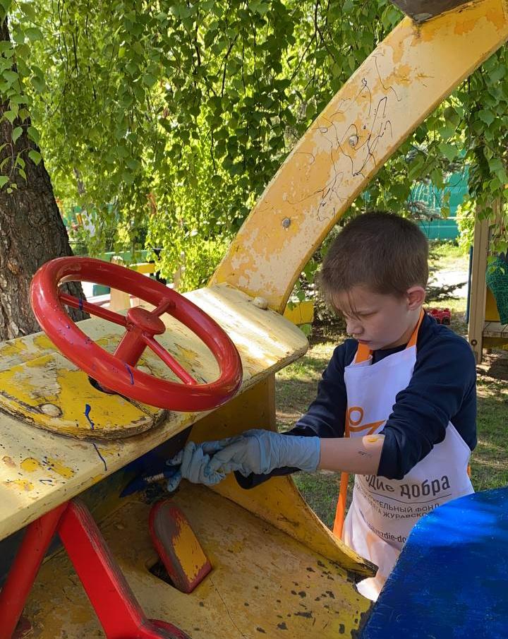 Вместе с ребятами волонтеры покрасили детскую площадку